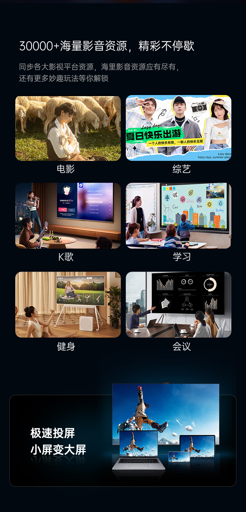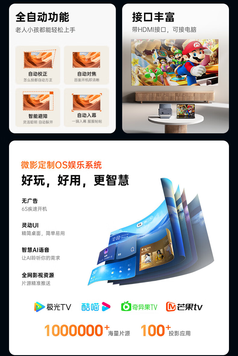 Amoi/夏新A2pro投影仪家用智能投影机便携卧室手机投影(光学电子对焦 高清画质 百元机皇)