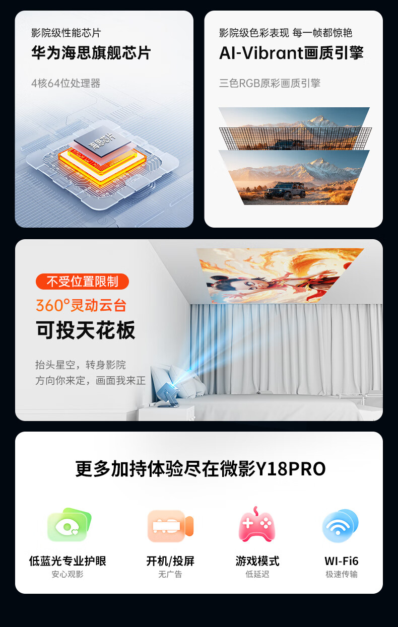 飞利浦(Philips)NeoPix 245投影仪家用1080P办公投影机卧室电视家庭影院便携智能手机投影家庭影院超高清白天 一体式双臂云台+千元旗舰机皇
