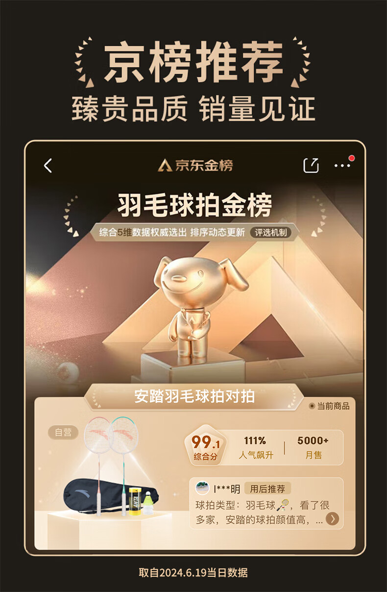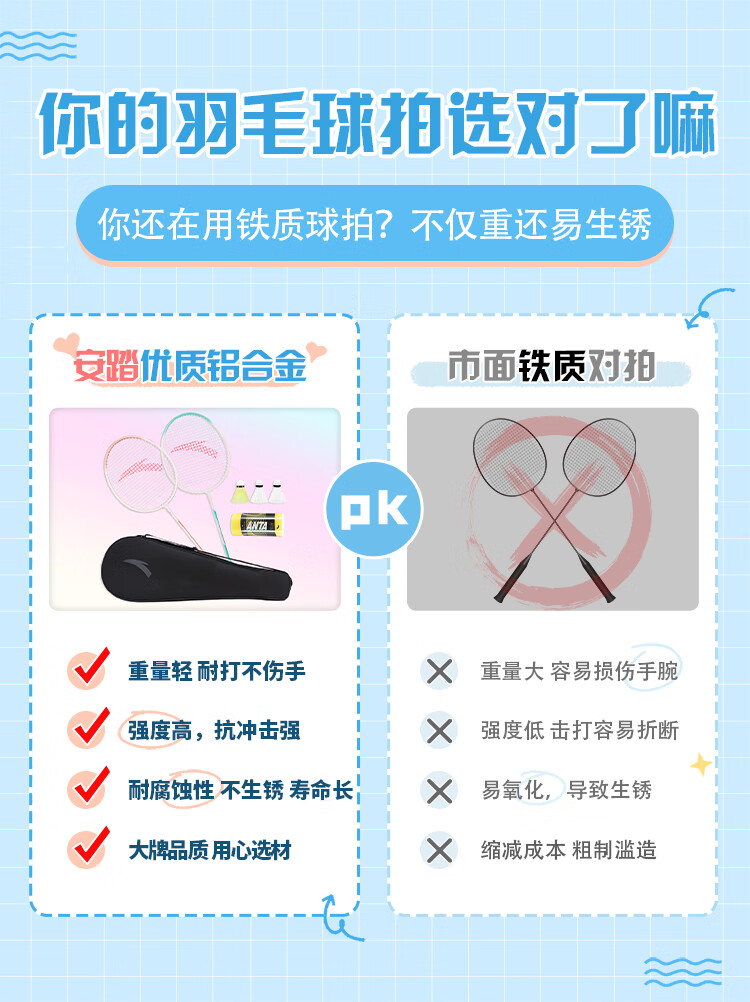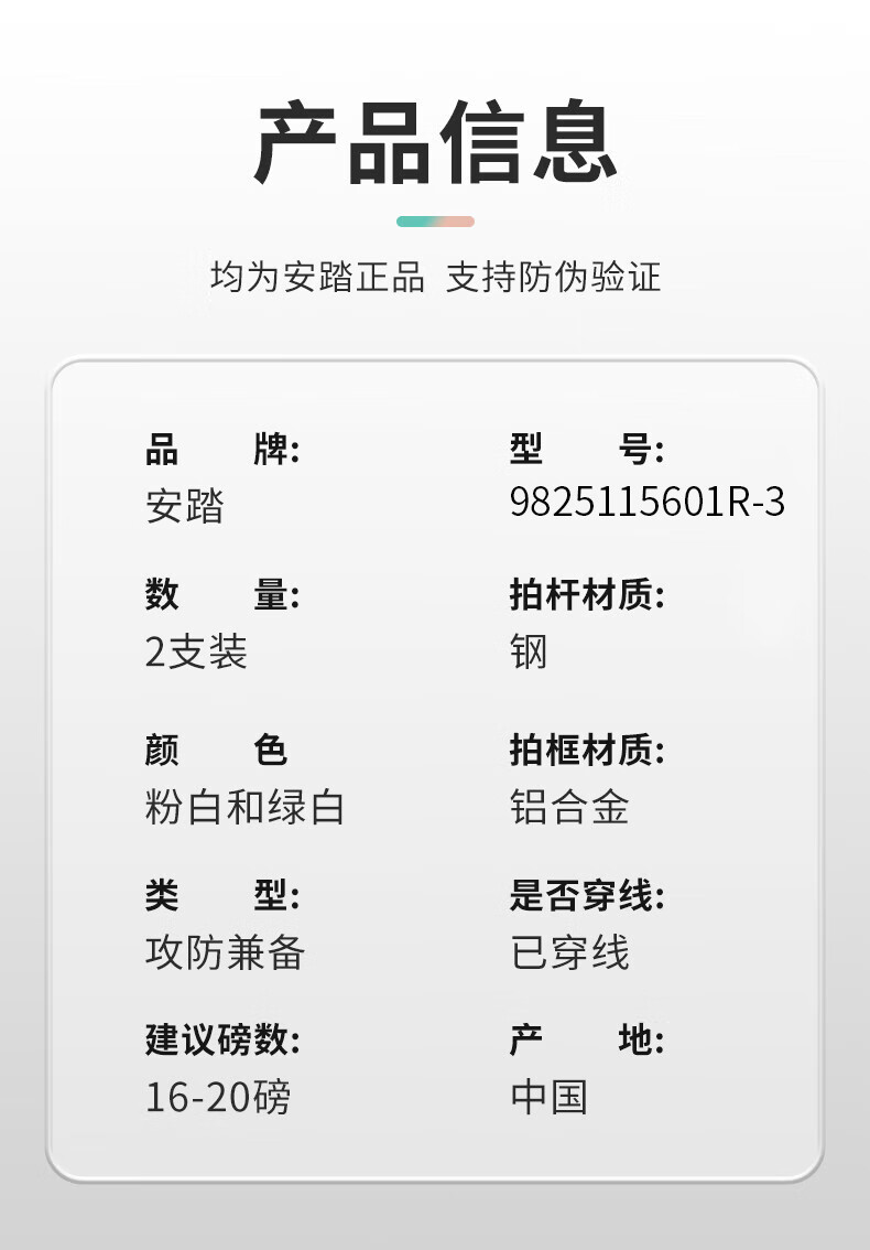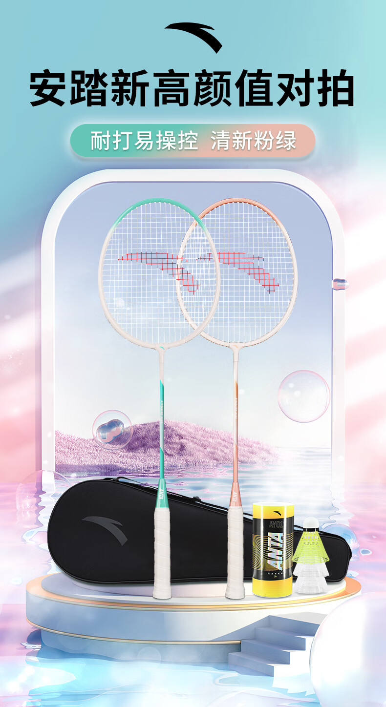安踏(ANTA)羽毛球拍对拍深凹槽超轻耐打训练比赛成人儿童学生防磨羽拍621-3