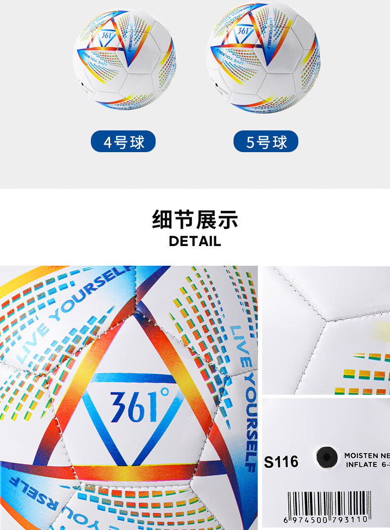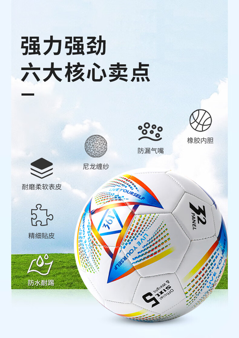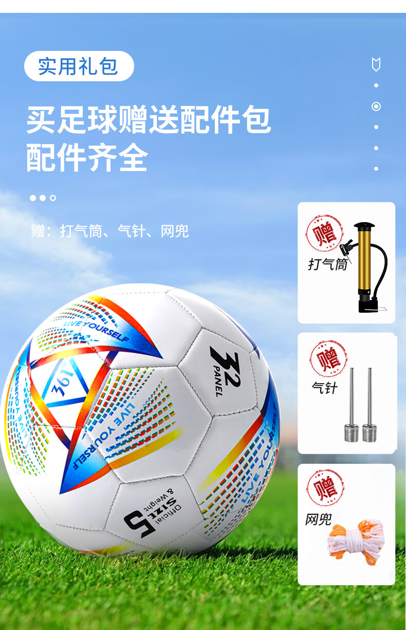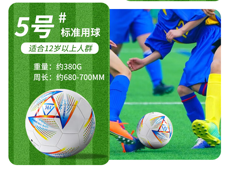 361°足球标准4号球5号球儿童成人青少年中考专业训练比赛耐磨五号球 特价前300单【5号】炫彩 丨标准球