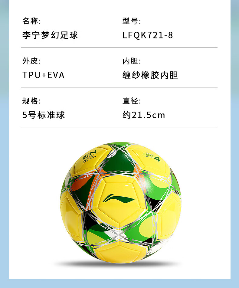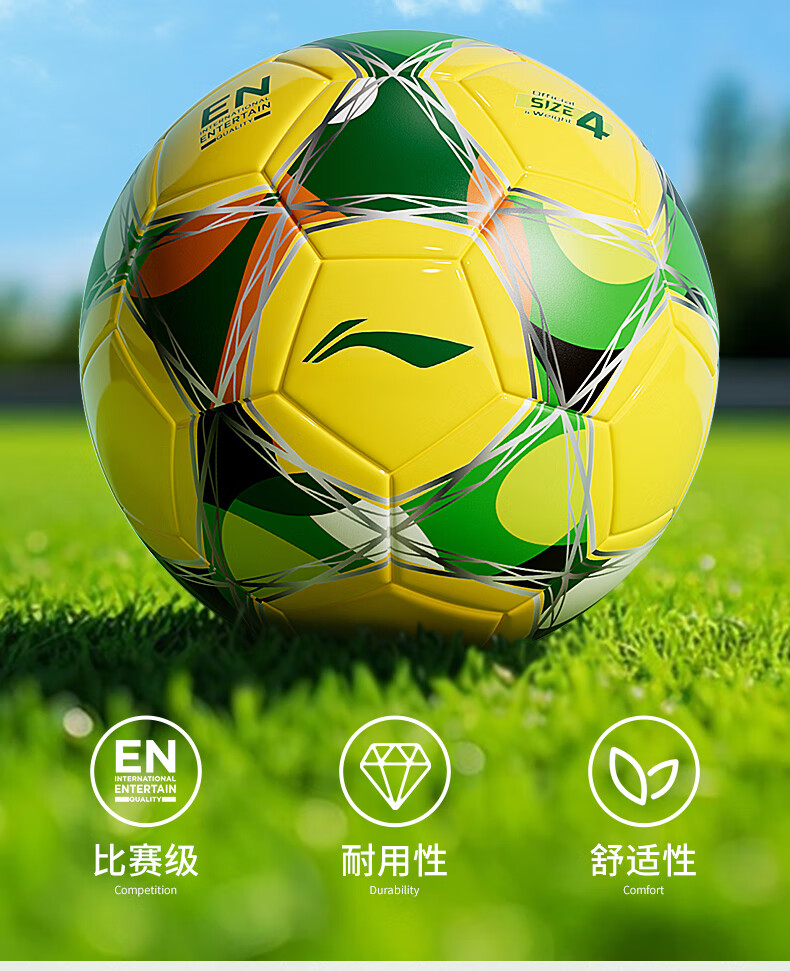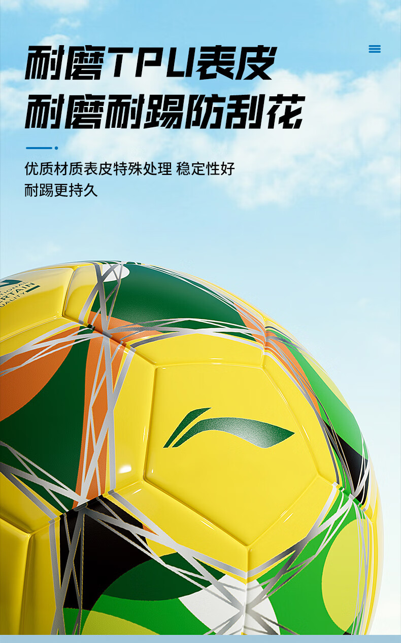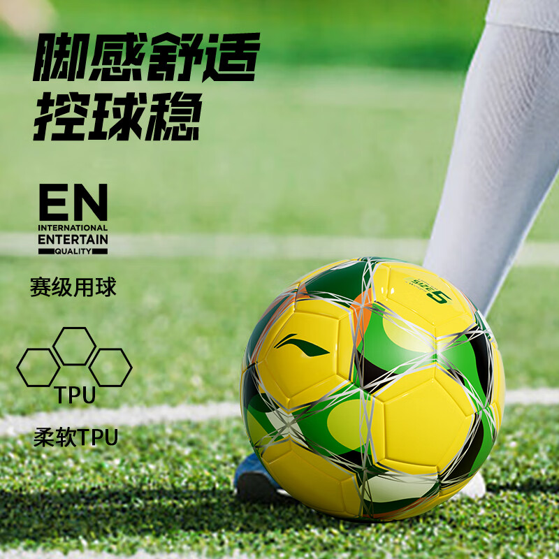 李宁(LI-NING)足球5号成人儿童中考考试专用球标准青少年比赛训练专业贴皮足球