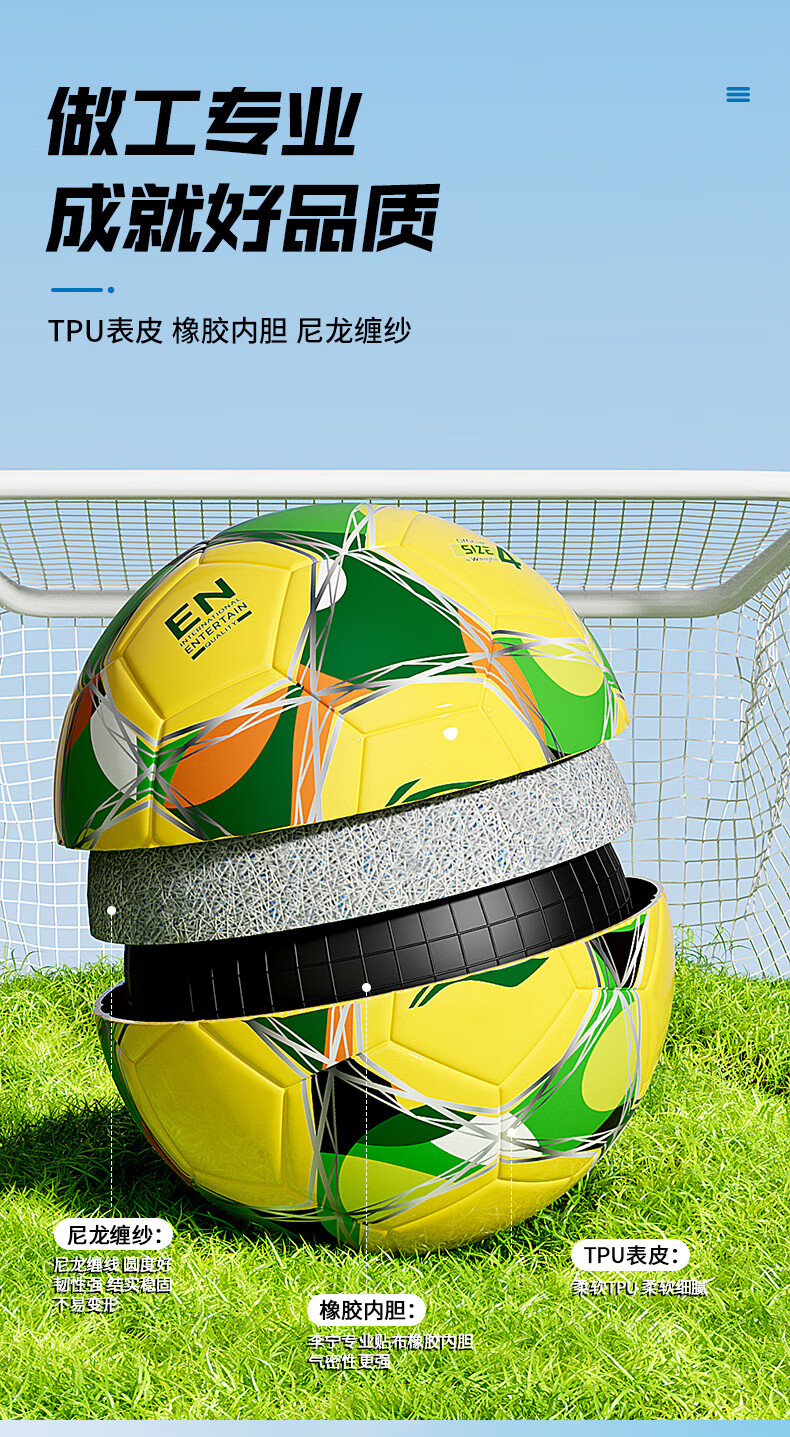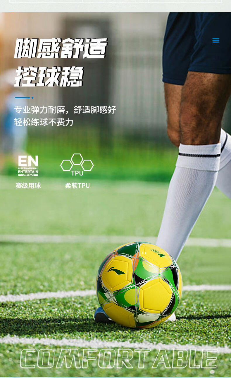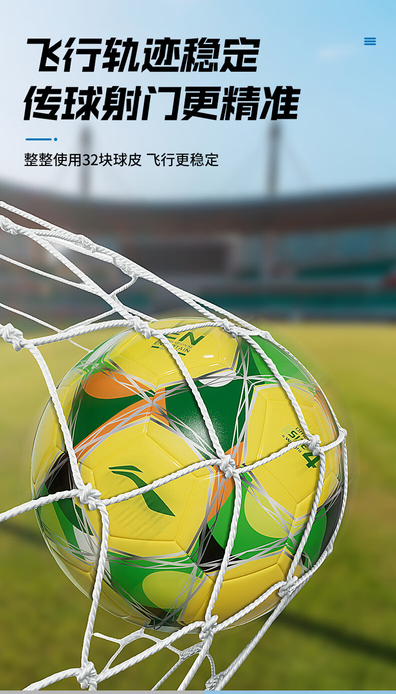 李宁(LI-NING)足球5号成人儿童中考考试专用球标准青少年比赛训练专业贴皮足球