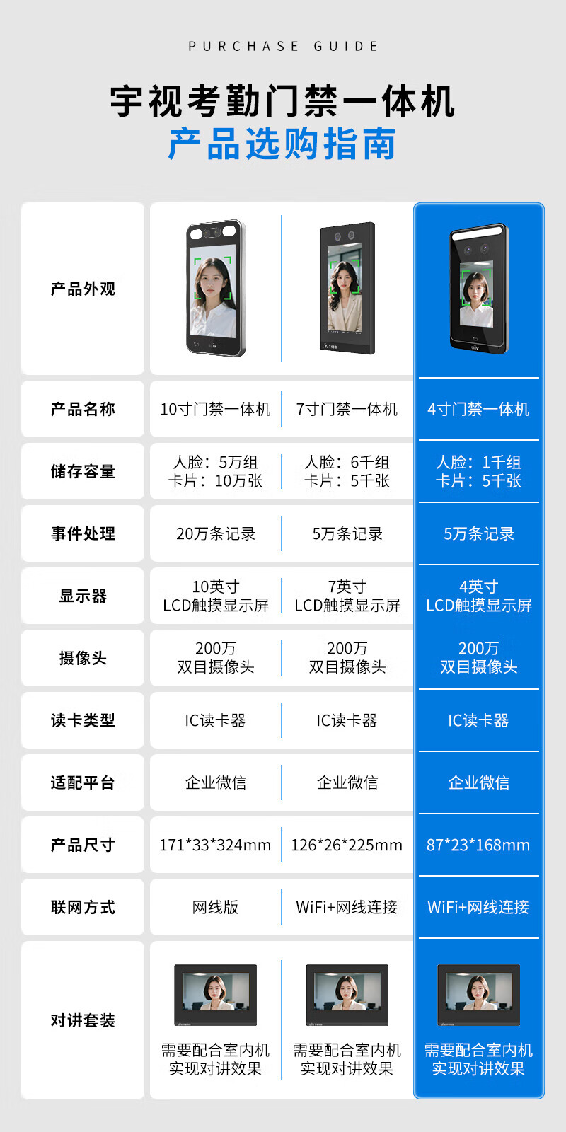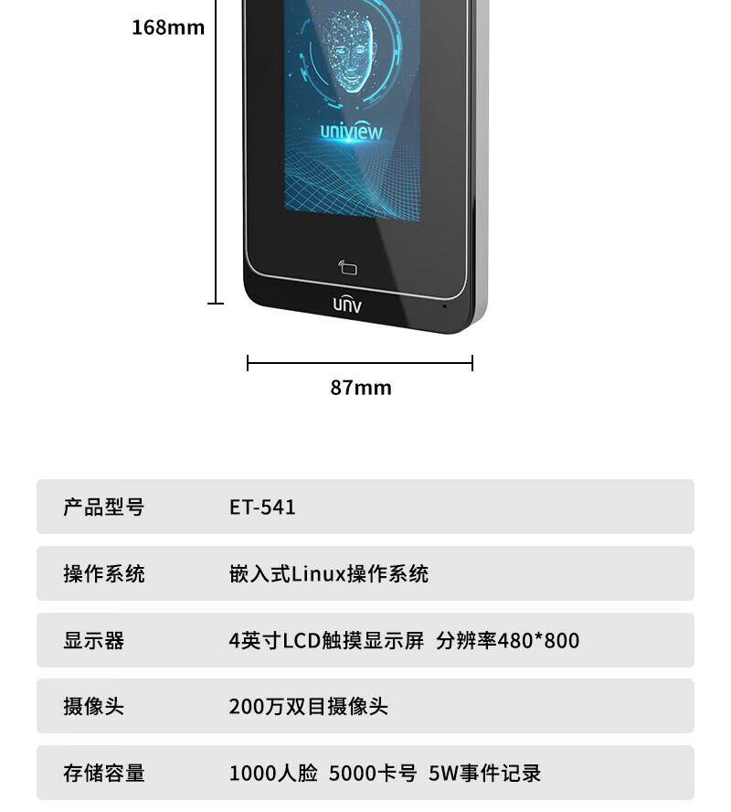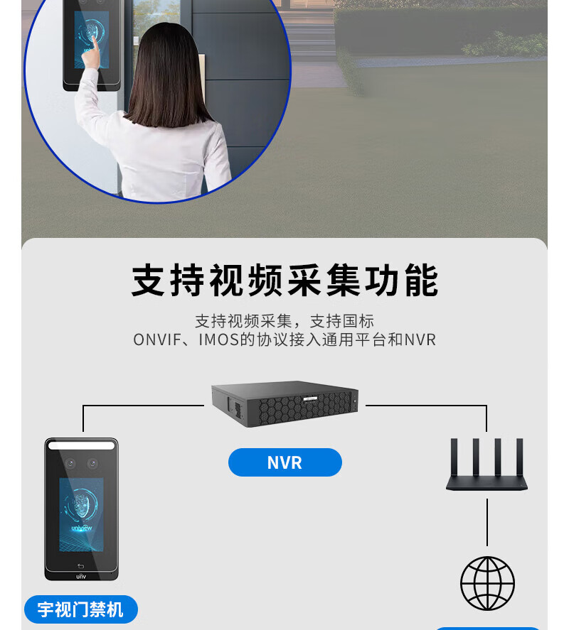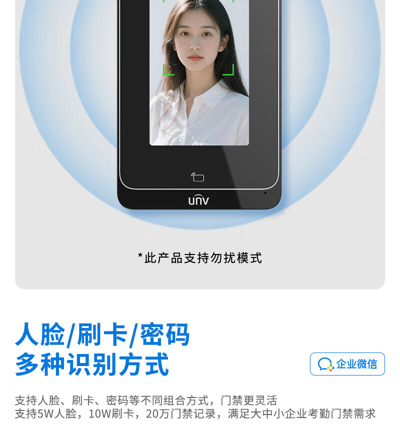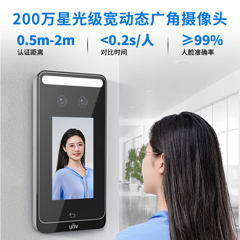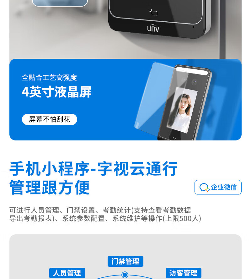 宇视科技门禁考勤一体机人脸动态识别签到机4英寸可视对讲办公室玻璃门人脸门禁智能门锁小程序开门 4英寸人脸识别门禁一体机(1000人+WiFi) 单主机